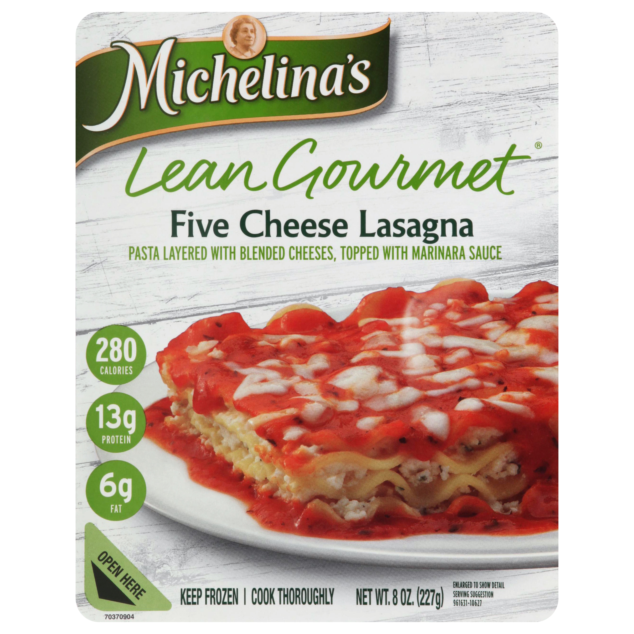 Pasta layered with blended cheeses, topped with marinara sauce. 280 calories; 13 g protein; 6 g fat. www.michelinas.com. Facebook. Tell Us We're Doing: 1-800-446-5469 (M-F). Write to: Ballisio Food, Inc., PO Box 16630, Duluth, MN 55816. For specific product comments, please include the UPC and stamped product identification code located on the tray.