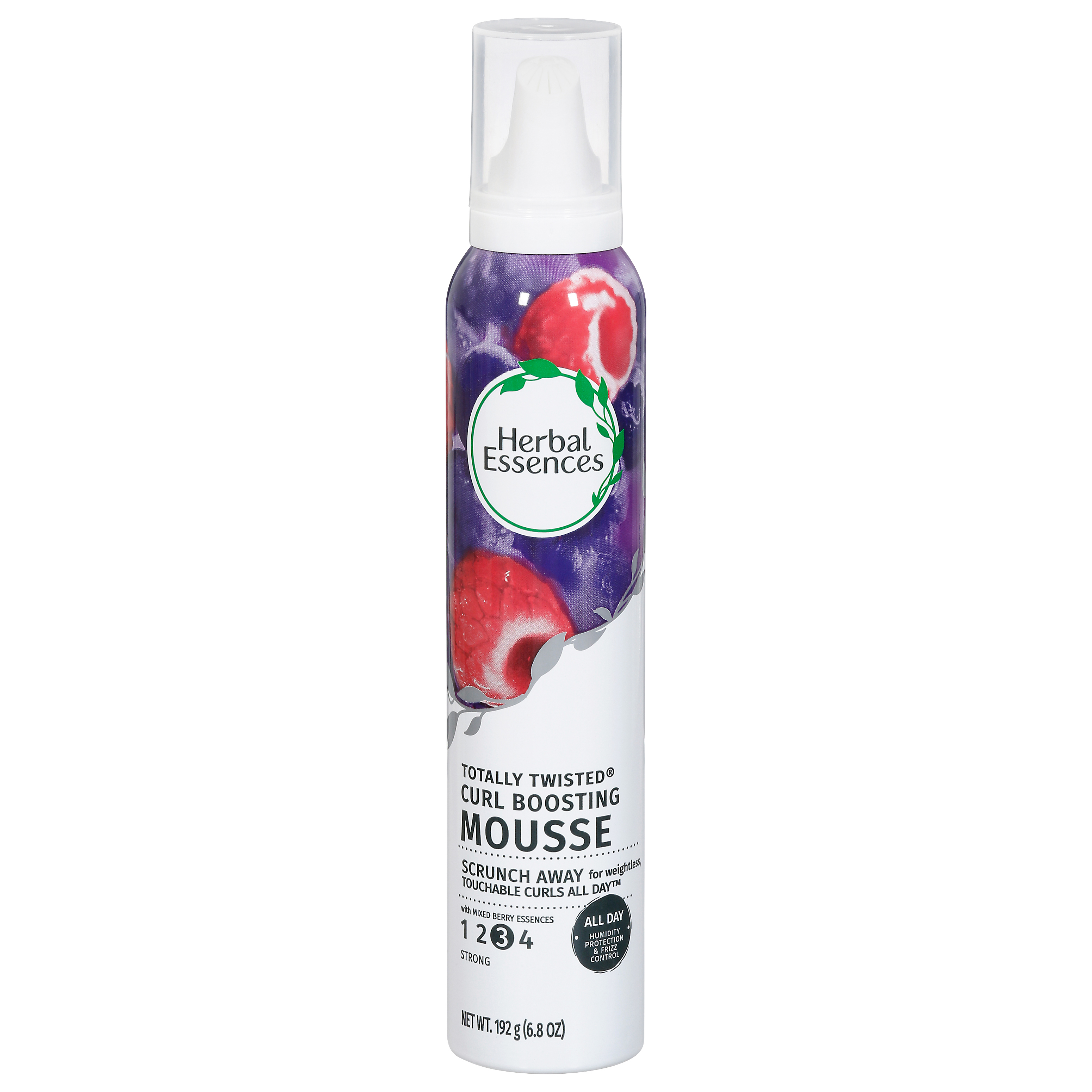 Scrunch away for weightless, touchable curls all day. With mixed berry essences. Strong 3. All day humidity protection & frizz control. Incredible fragrances. Irresistible style. Herbal Essences. Potent pleasure for all your senses. Boost your curls' bounce with every ounce of this miraculously light mousse, designed to pump up luscious curls and protect the waves you crave from humidity. Keep your style in line as you charm your senses, and your admirers, with our sparkling mixed berry fragrance. www.herbalessences.com. Questions? 1-855-236-3327. www.herbalessences.com. Made in U.S.A of U.S. and/or imported ingredients.