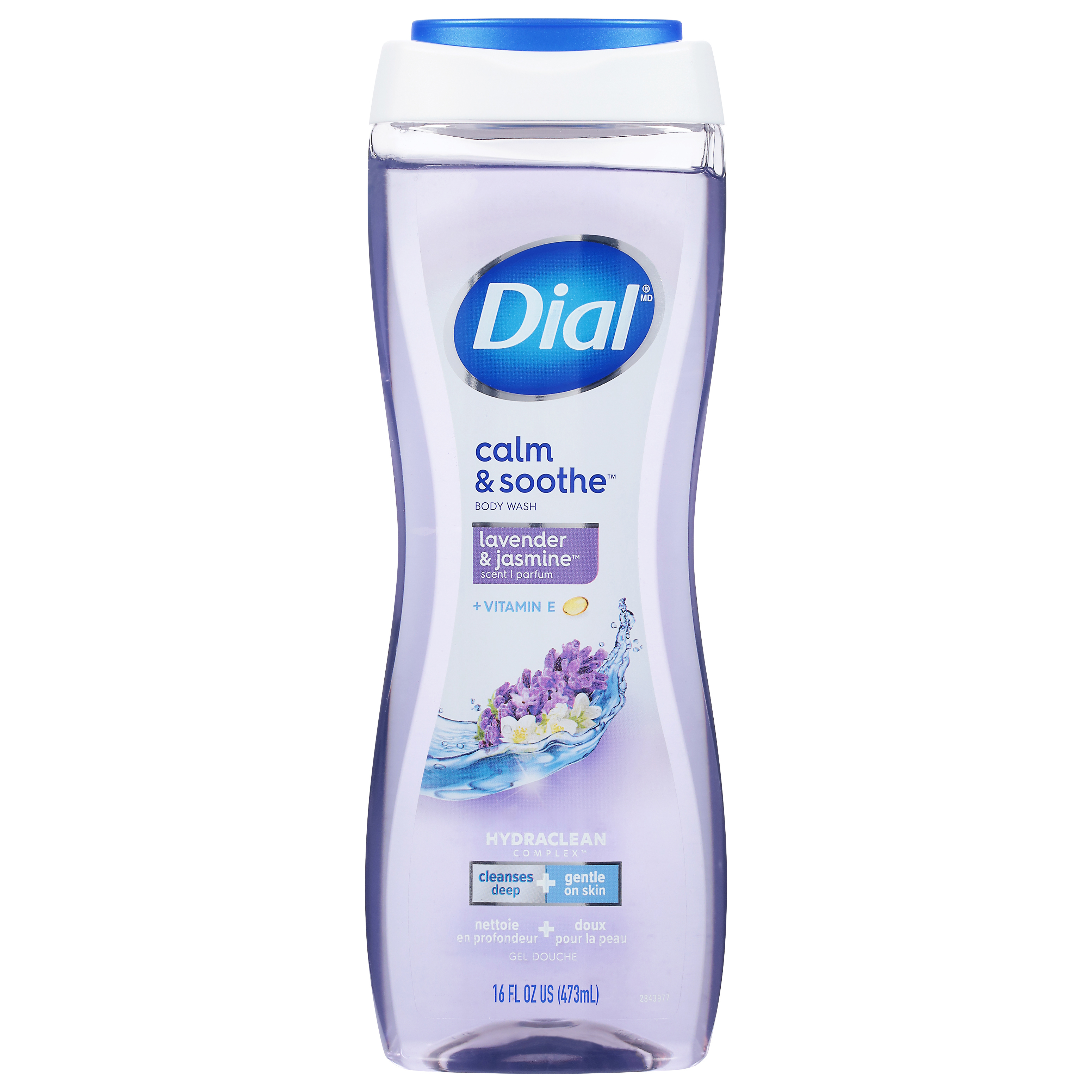 Cleanses deep + gentle on skin. + Vitamin E. Scent. Hydraclean Complex. Deep clean feeling. Gentle on skin. Unwind with the scent of lavender & jasmine and transport yourself to a calming place. Dial HydraClean Complex cleanses deep while being gentle on your skin, leaving it feeling soft & healthy. Free From: Sulfated surfactants, parabens, phthalates, silicones. pH balanced. Dermatologist tested. www.dialsoap.com. www.dialsoap.ca. how2recycle.info. Scan to learn more about Dial. Questions? Call 1-800-258-DIAL (3425). 100% recycled plastic bottle*. * Excludes cap. Cruelty free. Mixed & bottled in the USA.
